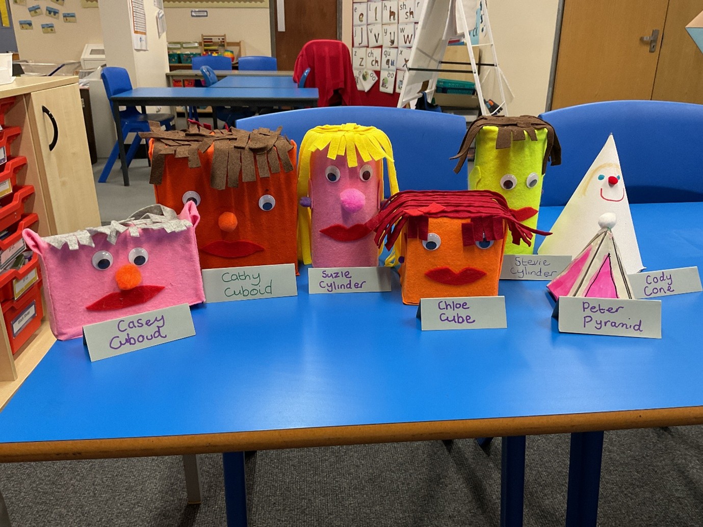 ABC have been studying 3D shapes and discussing their properties. We made our own and used alliteration to name them.
