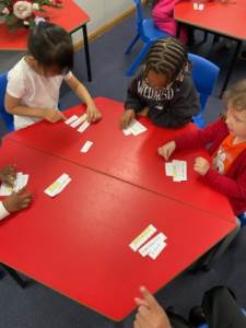 We have been reading some wonderful books, including ‘Three Billy Goats Gruff’, ‘Which Nose for Witch?’, and ‘Snowball’. We have been learning about what makes a sentence, using verbs and nouns to help us to build ideas. We have been practising plurals, thinking about which words need -s and which need -es. The children are building their understanding of sentences through reading, speaking and writing.