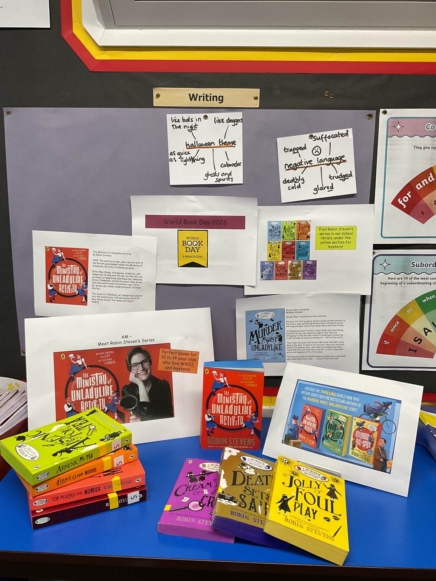 Year 6 had a brilliant World Book Day exploring the work of author Robin Stevens, whose friendly, chatty style and WW2‑based mysteries had everyone hooked. We read Chapter 1 of her new series and loved following the characters as they decoded clues and uncovered early hints about the story. A quick‑fire quiz tested how much we’d remembered - our detective skills were impressive!