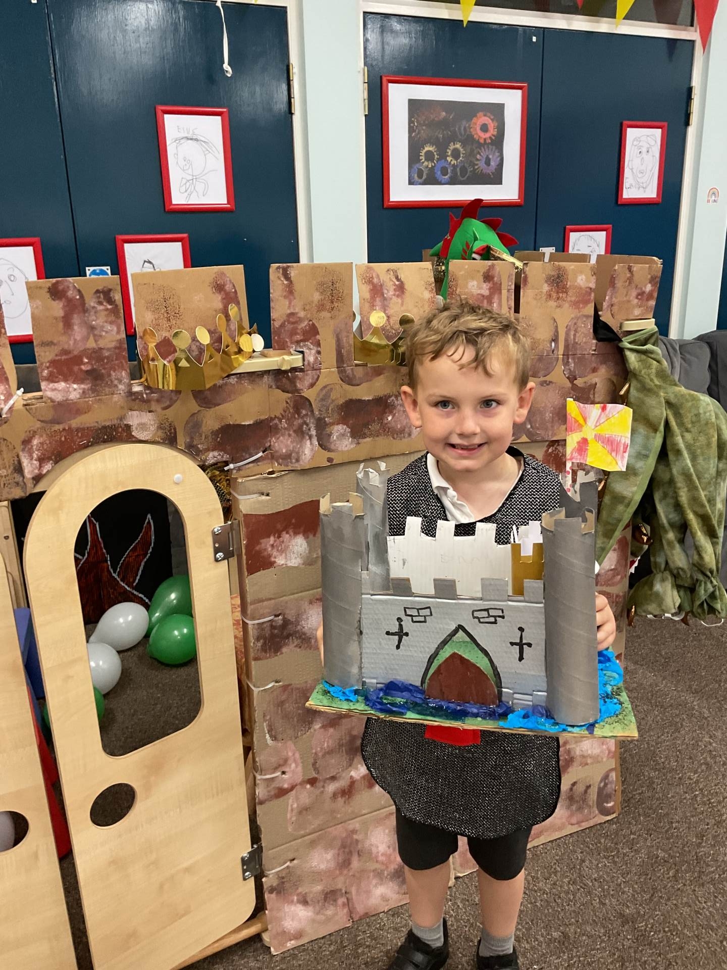 First up, we got ‘battle ready,’ by designing our very own shields and swords. We carefully painted these and then we drew magnificent dragons to decorate our masterpieces!