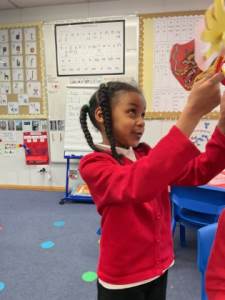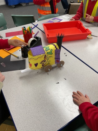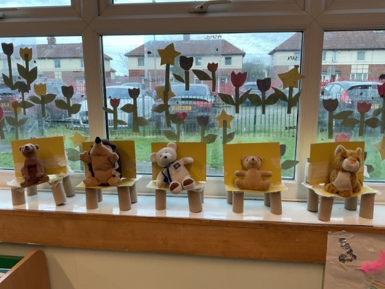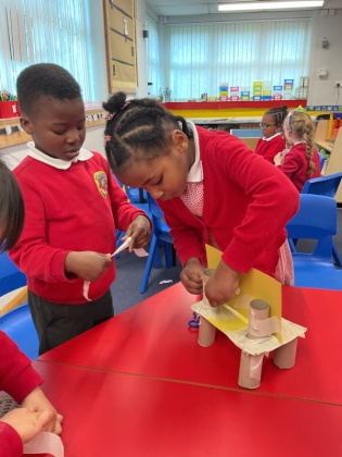 In DT, we made a new chair for Baby Bear, whose chair was broken by Goldilocks! The children investigated what chairs are, what types of chairs there are and what makes chairs stable. We then built our own chairs, with the children discovering how to join the legs to the seat and the seat to the back. Our chairs were ‘just right!’ for Baby Bear.